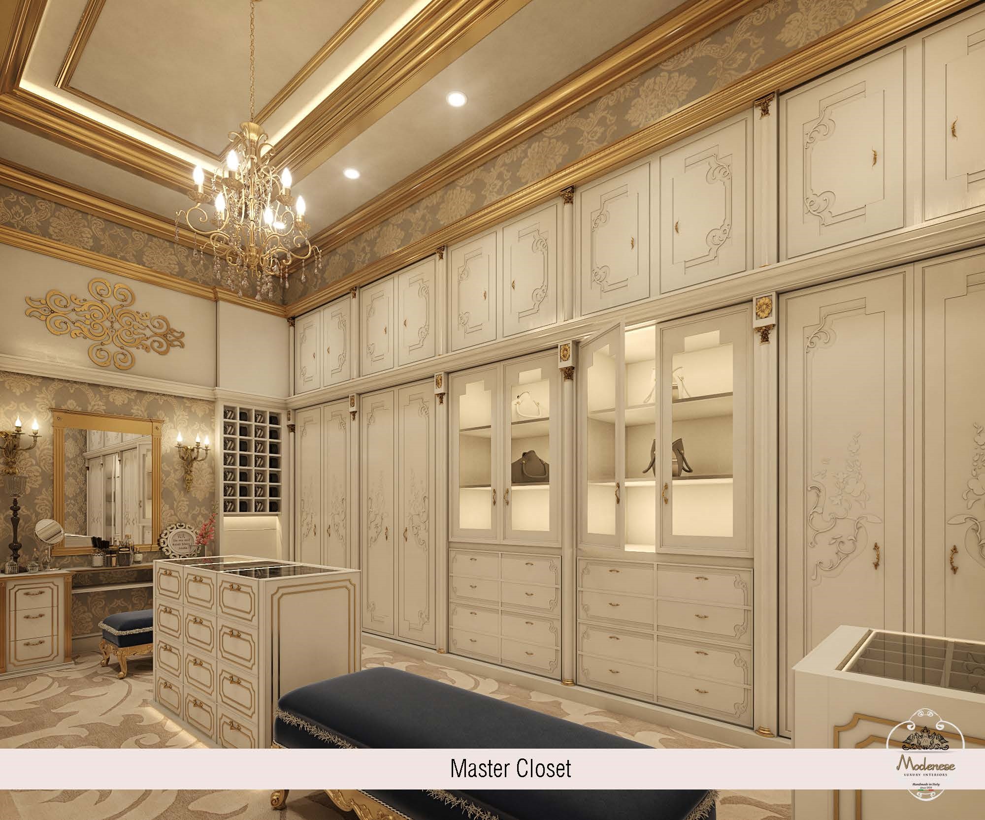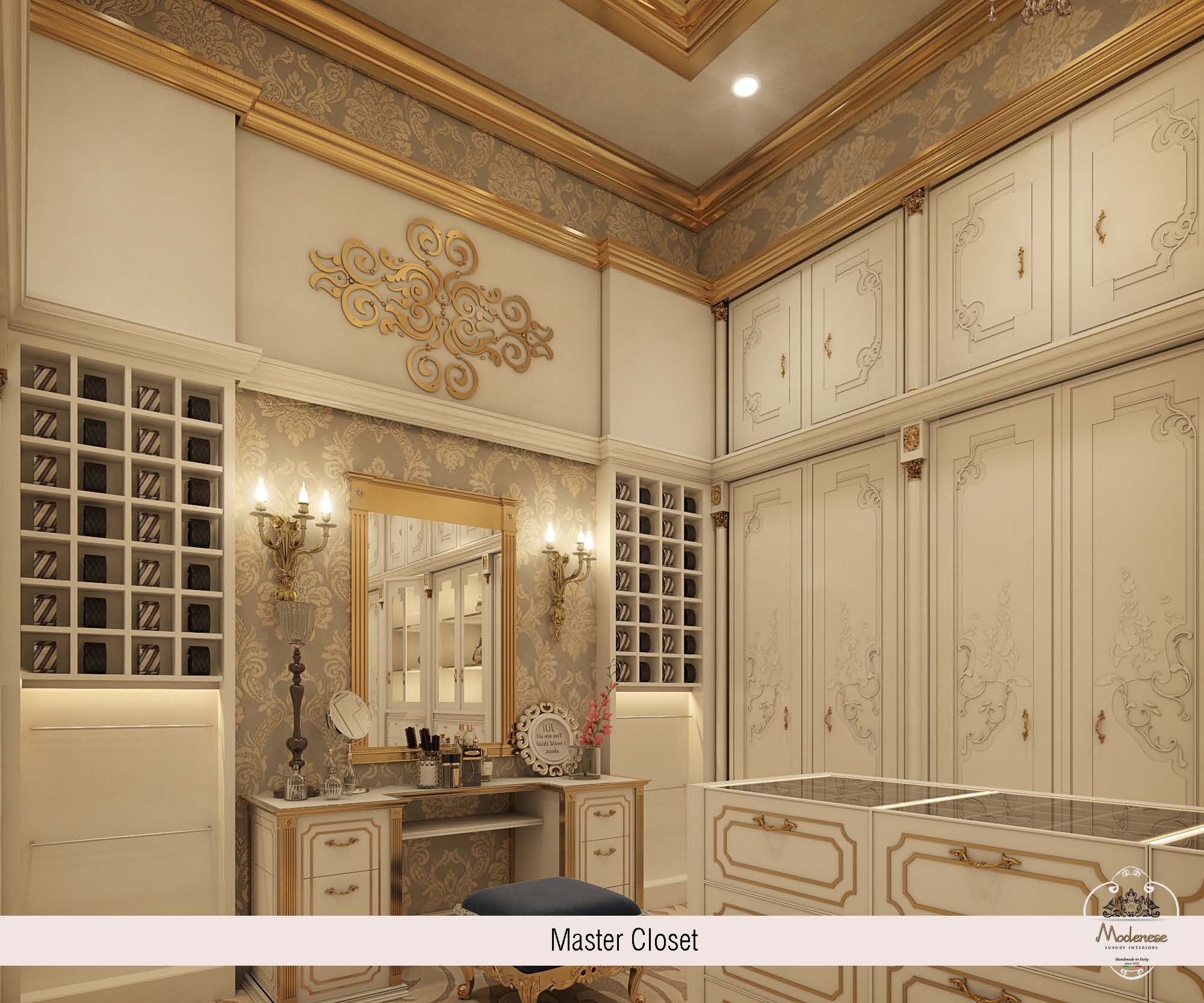 Many people like the ceiling since it can be viewed from a long distance. Do you desire a beautiful chandelier? We’ve got it. Do you desire beautiful roofing? We can get it for you. We have it all at Modenese Luxury Interiors. The ceiling will provide your walk-in closet with the grandeur it deserves. A room isn’t complete unless it has walls. The walls in this chamber were lavishly designed. Every design and material utilized is really stunning. The design’s simplicity is outstanding, and you will undoubtedly enjoy it. Modenese Luxury Interiors has created a number of designs, ranging from drawings to complete execution.