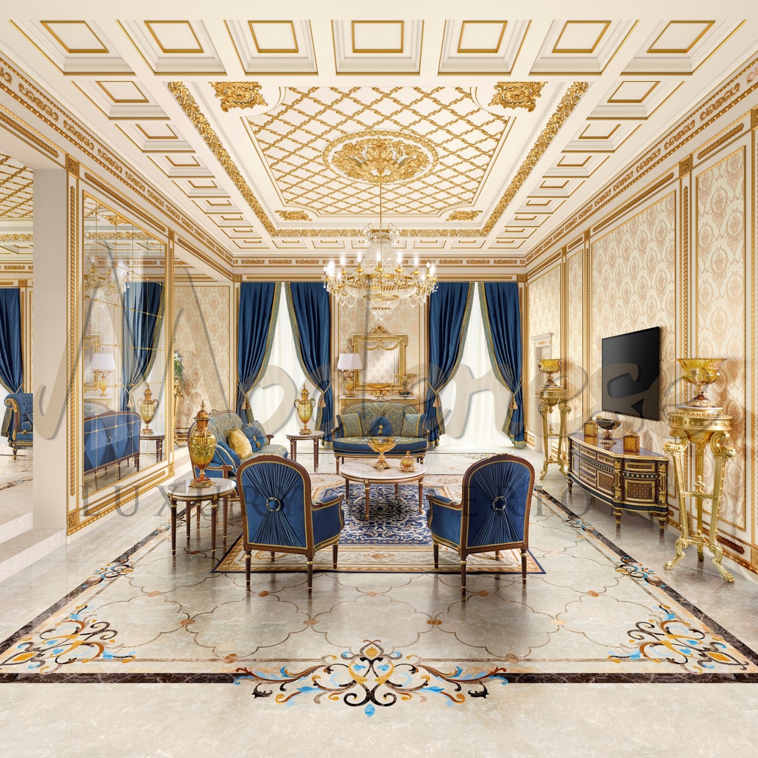 The colors you pick for your house should be significant and have a calming influence on your space. The vibrant furnishings and fabrics create an exciting atmosphere that will last all day! Ensuring that the surroundings are excellent in every corner The hue blue has a calming influence on your mind and provides you a pleasant sensation both day and night. The sitting room is one of the most used rooms in the house, thus it should always be orderly, peaceful, and stylish. Colorize your space and contact us for assistance; the Modenese Luxury Interiors firm is always here to assist you.