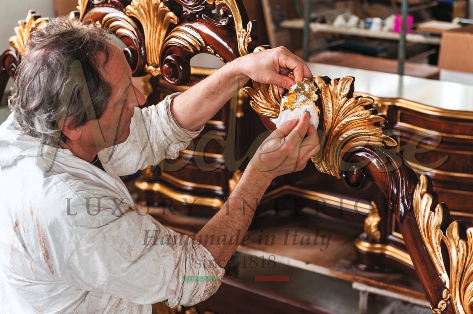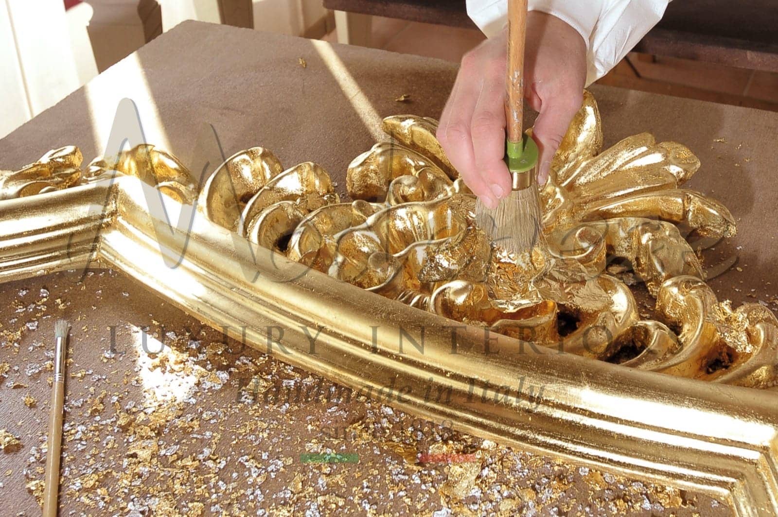 To create premium quality furniture, our artisans apply the gold leaf technique by hand and decorate with it our top quality solid wood furniture.