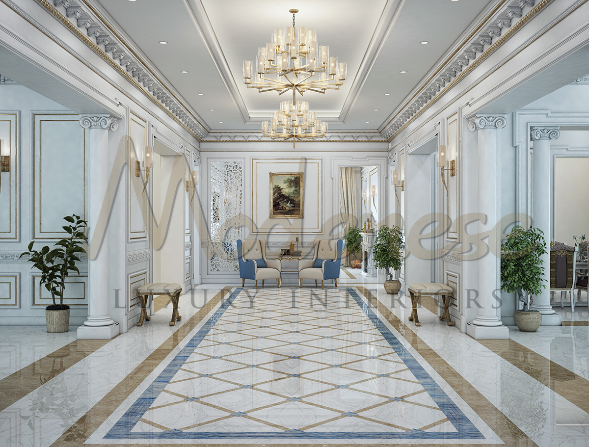Palace interiors have captivated visitors for years due to its richness of design, gorgeous furnishings, and famous components. A stunning example is Modenese Luxury Interiors’ grand traditional décor of a rural home hall.