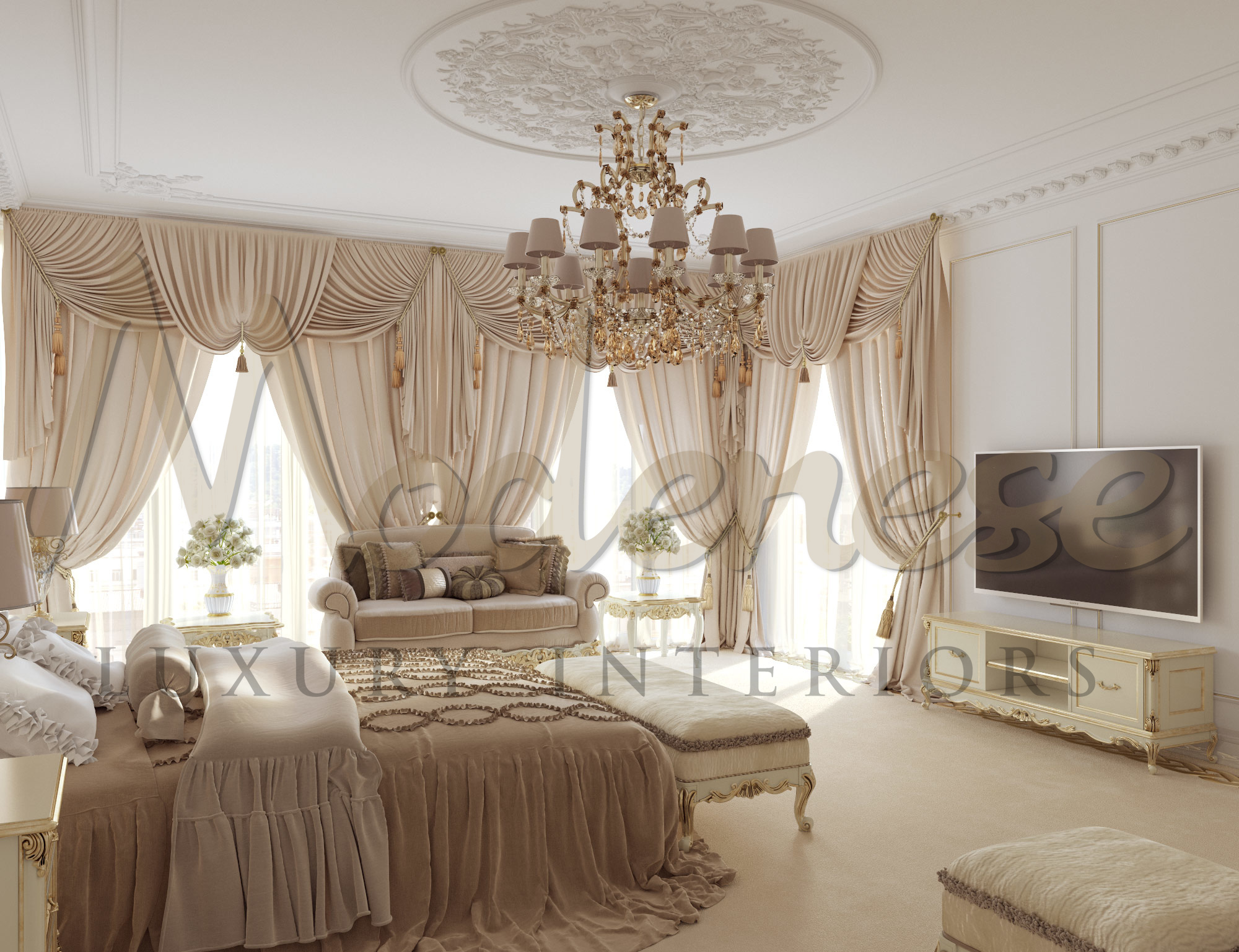 This style is one of the most popular. Following traditions in bedroom interiors, we use stucco, handmade carving, gilding, classic-style furniture. For premium bedroom interiors our designers develop author’s furniture. Textiles play a huge role in the bedroom interior. The decoration of a bed and windows set the tone for a luxurious and cozy mood. A huge role also belongs to the
