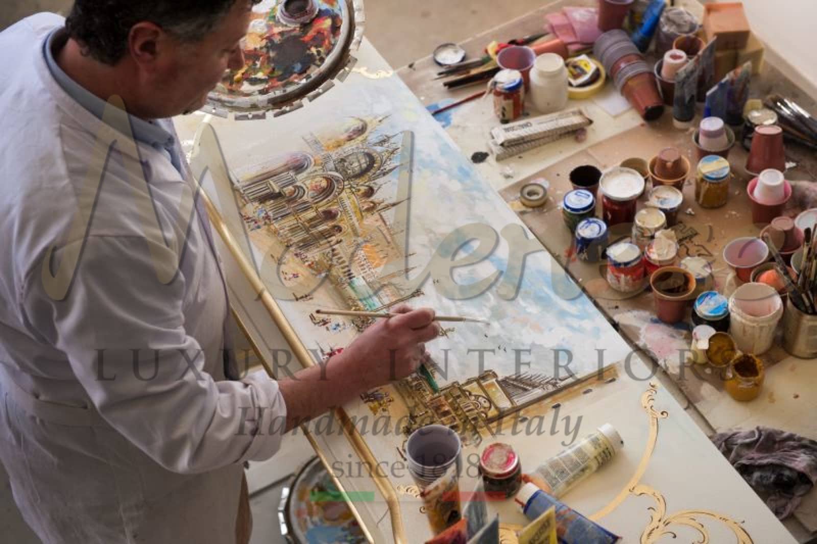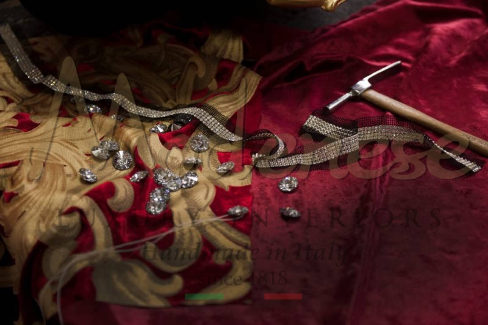 Details are the key of luxury quality furniture. At Modenese Luxury Interiors we manufacture handmade furniture with golden leaf details and hand painted decorations, custom made from the design by our expert team to the best final luxury exclusive product.