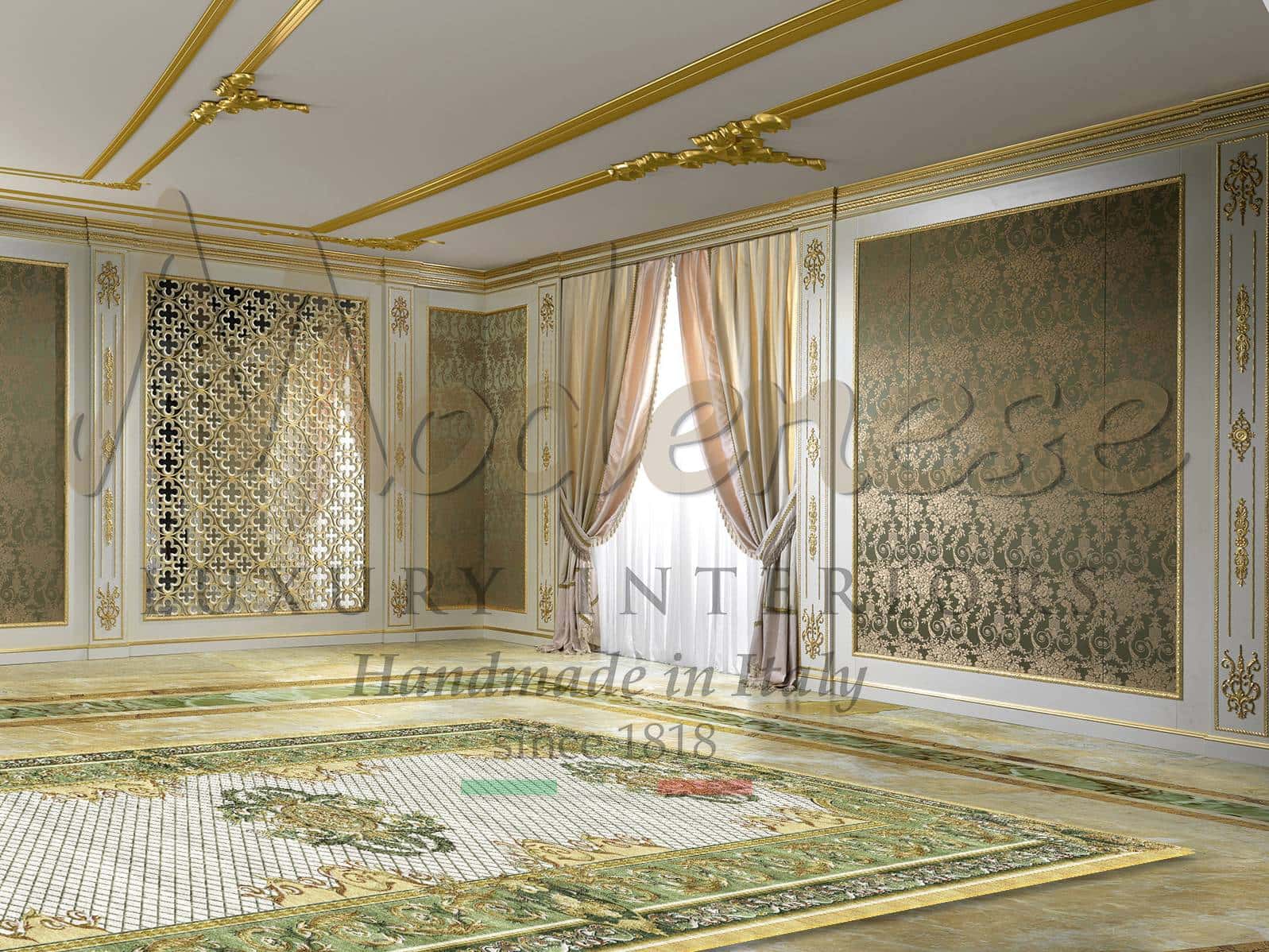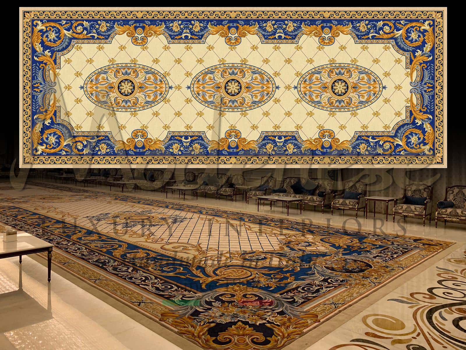 Complete your interior design project with Modenese Luxury Interiors exclusive ornamental carpets selection for the most luxurious home decoration projects. Classic and bespoke carpets to decorate your elegant and baroque royal palace and villa. Interior service to design all the details of your residential project with the traditional classic touch of refined made in Italy handmade rugs.