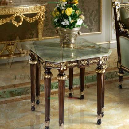 Bring a bright accent to your royal living room, completing the furnishing process with Modenese Interiors luxurious coffee tables collection, exclusively handcrafted, 100% made in Italy by highly skilled master artisans. Our full collection of solid wooden coffee tables, whether with handmade painting top decoration, inlaid elements or precious marble top will be perfectly coordinated with your personalized choice of sofa sets, transforming your home décor areas in such a sumptuous living space.
