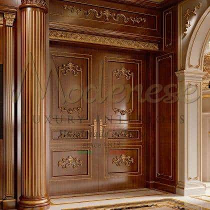 The production of elite interior doors by Modenese luxury furniture supplier is equivalent to a refined and accurate craftsmanship: this is a process that allows to produce even the most complex customer orders. The main dignity of classics is grace, as well as the harmonious proportionality of all parts and details and this feature is well highlighted in our collection of bespoke doors. Solid wood material, sophisticated ornamental patterns and traditional handmade decorations make Modenese doors collection easily recognizable. Classic interior doors are always a good purchase option, perfectly fitted in a wide variety of rooms and ambiences.