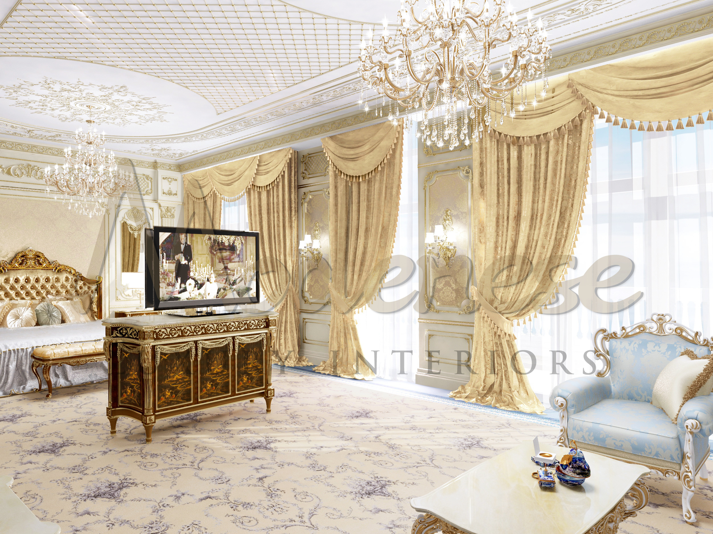 Beautiful royal master bedroom interior design in classic style is a part of a project for a luxury palace in Riyadh.