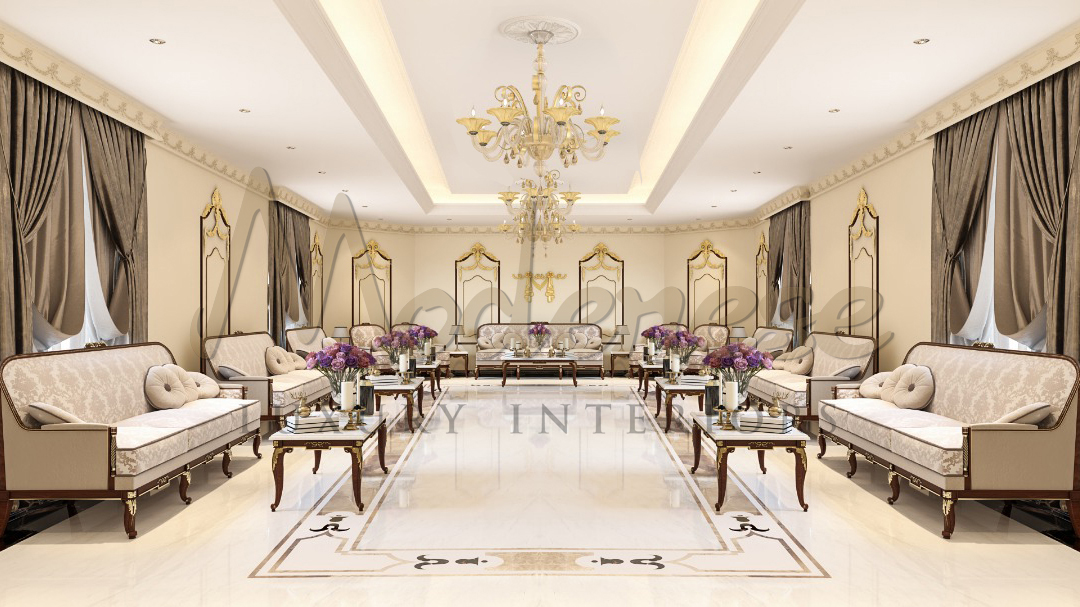 To create such a magnificent and perfect décor, Modenese Luxury Interiors designers combine new ideas, current technology, and classic aesthetic traditions. The sumptuous classical living room was the climax of a wonderful interior tale in which every element, every component of the design had philosophical significance. The décor of the living room has become the key way of displaying a homeowner’s good taste, respectability, and cordiality.