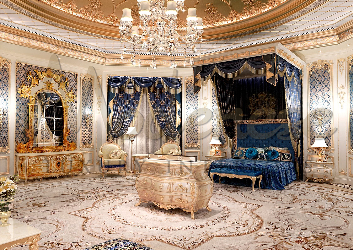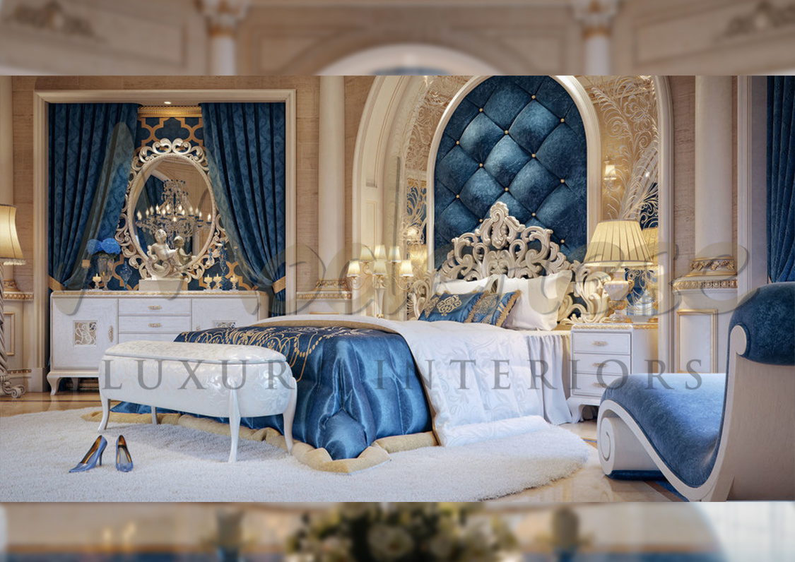 Interpretation of blue in the classical bedroom interior
