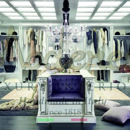 Luxurious dressing rooms crafted by Modenese luxury furniture supplier offer a comprehensive designing realization that brings all the essential interior ingredients into one complete project, which turns that specific home space in a functional and well-organized graceful niche. What differentiates us is the exclusive use of premium quality raw materials, solid wood structures and handmade decoration details which will transform your ideal dressing room in an exclusive area, completely custom-designed.