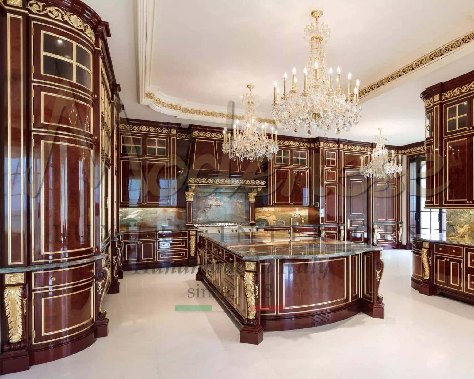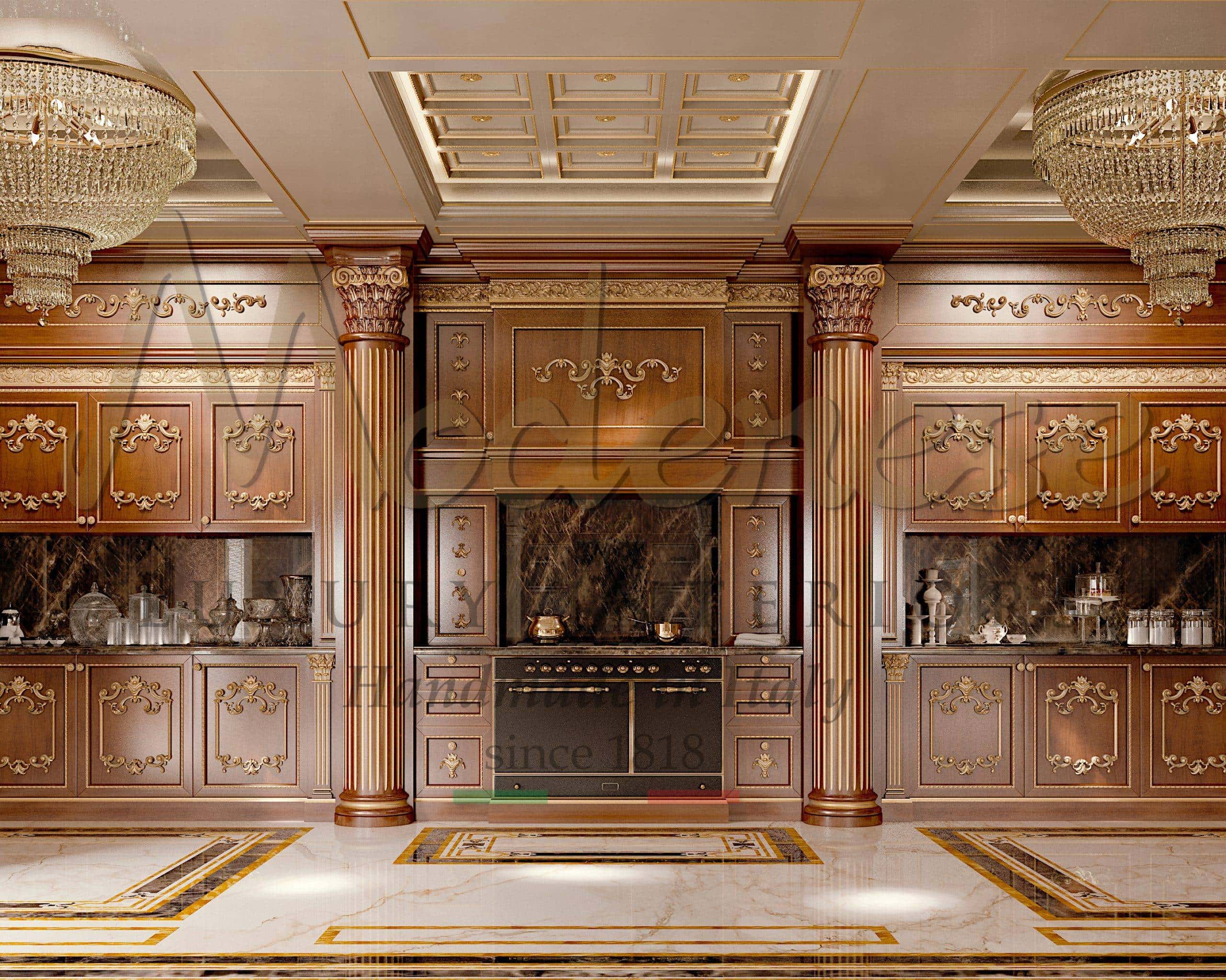 Classic and exclusive solid wood kitchen projects designed by our expert architects and handcrafted in Italy by our skilled master artisans. Personalize and create your own luxury kitchen project in a unique design for your residential elegant home décor. Opulent French style or refined baroque ideas and designs will be well selected by Modenese designers for your villa project. High-end quality materials and traditional Italian manufacturing for a timeless kitchen project.