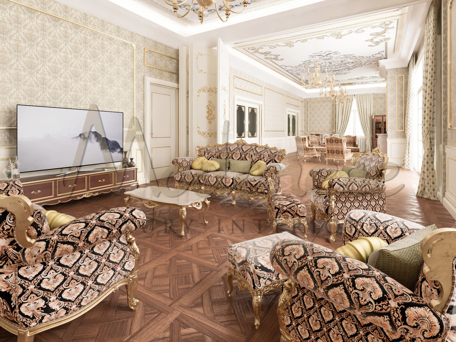 The airiness and elegance of the most opulent rooms. Classical dress is becoming more polished and elegant. This stunning piece reflects an entirely new and inventive approach to designer décor. Modenese Luxury Interiors designers mix the finest, adding their own distinctive design to create a new direction, which creates a new vision of luxury. The flawless symmetry and relationship between each element and each curl décor creates the aesthetic integrity of the room. Beauty standards are evolving into something more delicate and meaningful. In this project, excellent gentility reasons that form a luxury house in the ancestral family nest may be traced.