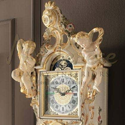 Luxury venetian style grandfather clocks produced by Modenese Luxury Furniture supplier emphasize the unquestionable objective of keeping attention level to the highest made in Italy quality standards. We are at our customers’ disposal to let them select the most suitable floor clock to enrich the home décor ambiences. Create now your own preferred design of luxury grandfather clock with premium quality materials, handmade painting decorations and bespoke elements. Enjoy your luxury time!