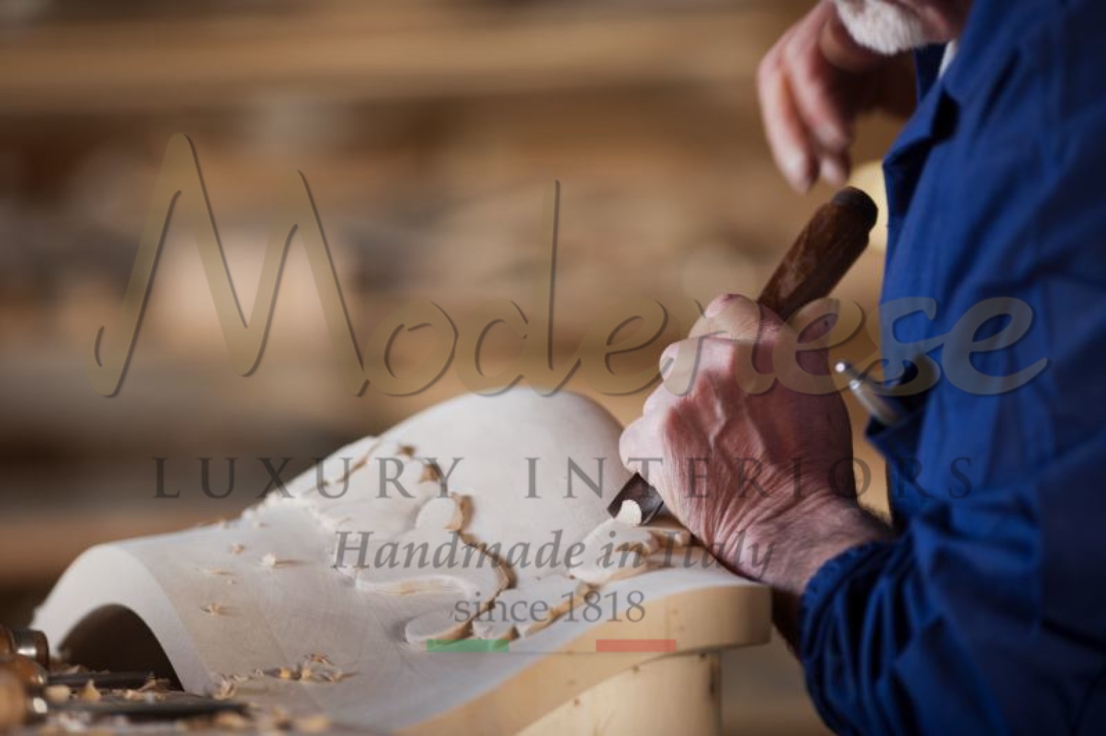 The heart of Modenese Luxury Interiors is made by artisans. In fact, the company is well known worldwide for its craftsmanship and high artistic value. Our experienced artisans use their skills and know-how to create carved handmade luxury furniture to decorate classic villas and Royal palaces.