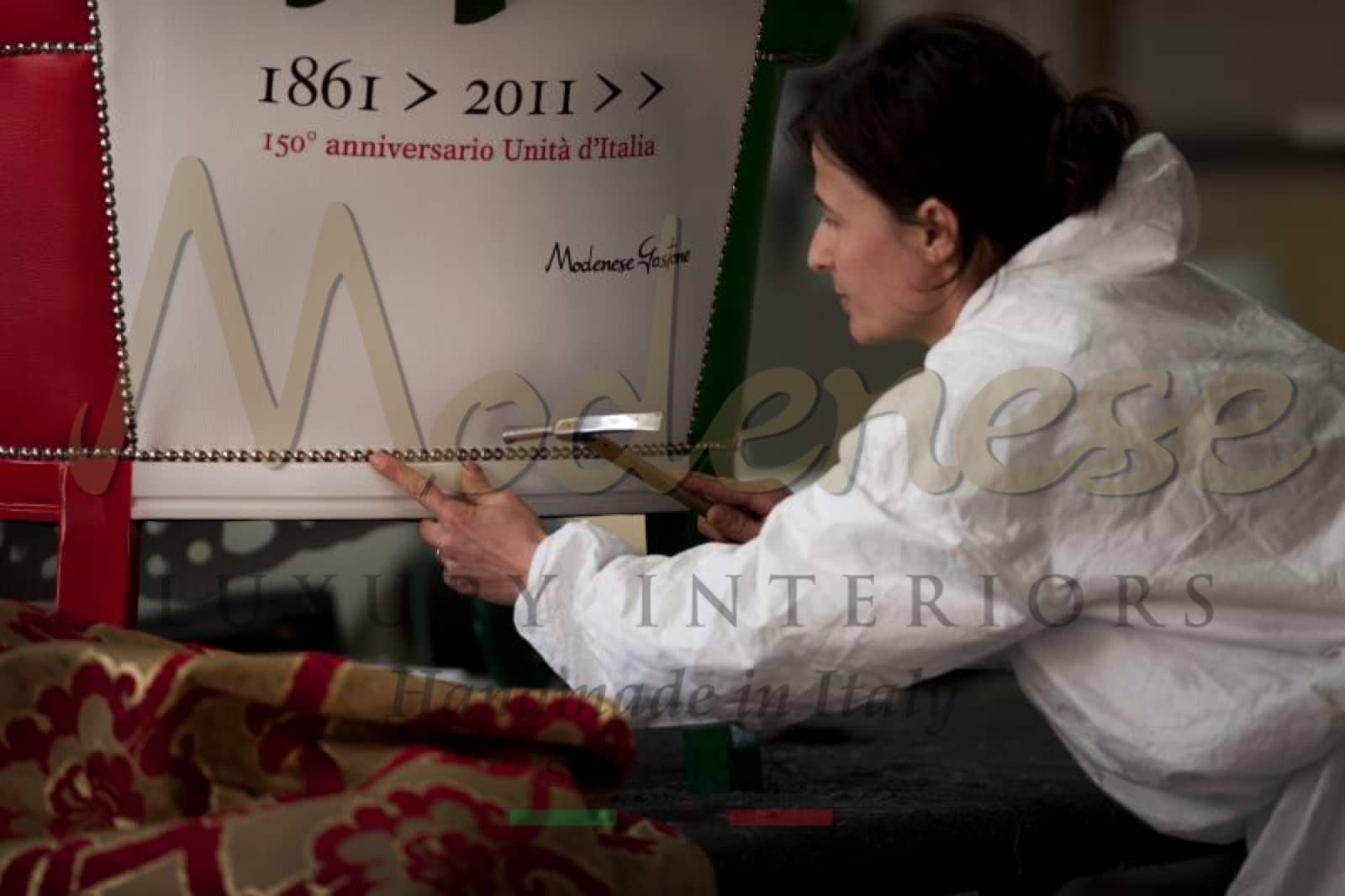 In 2011, Modenese Luxury Interiors had the pleasure to produce a unique collection of sofas and armchairs for the 150˚ anniversary of the Unification of Italy.
