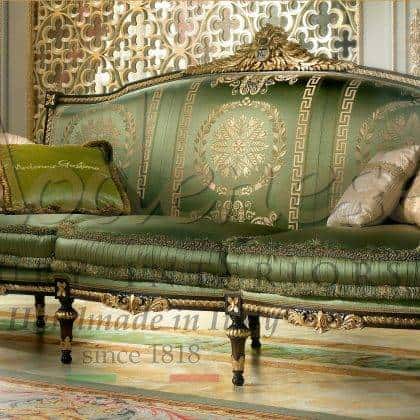 We offer a huge selection of elegant classic Italian sofas, a perfect mix of handmade wood carvings combined with elegant fabrics and genuine leathers, which allow you to choose an ideal product that fits perfectly into the interiors of your home. Modenese luxury furniture supplier has always aimed at maintaining high-quality standards with the production of distinctive pieces enriched by the worldwide recognizable classic Italian touch. Among our ornamental elements for Italian sofa sets, Swarovski buttons are often used to enhance the sofa’s upholstery which is made of soft, opulent made in Italy fabrics. Browse also a comprehensive collection of fabrics to add your favorite sense of style.