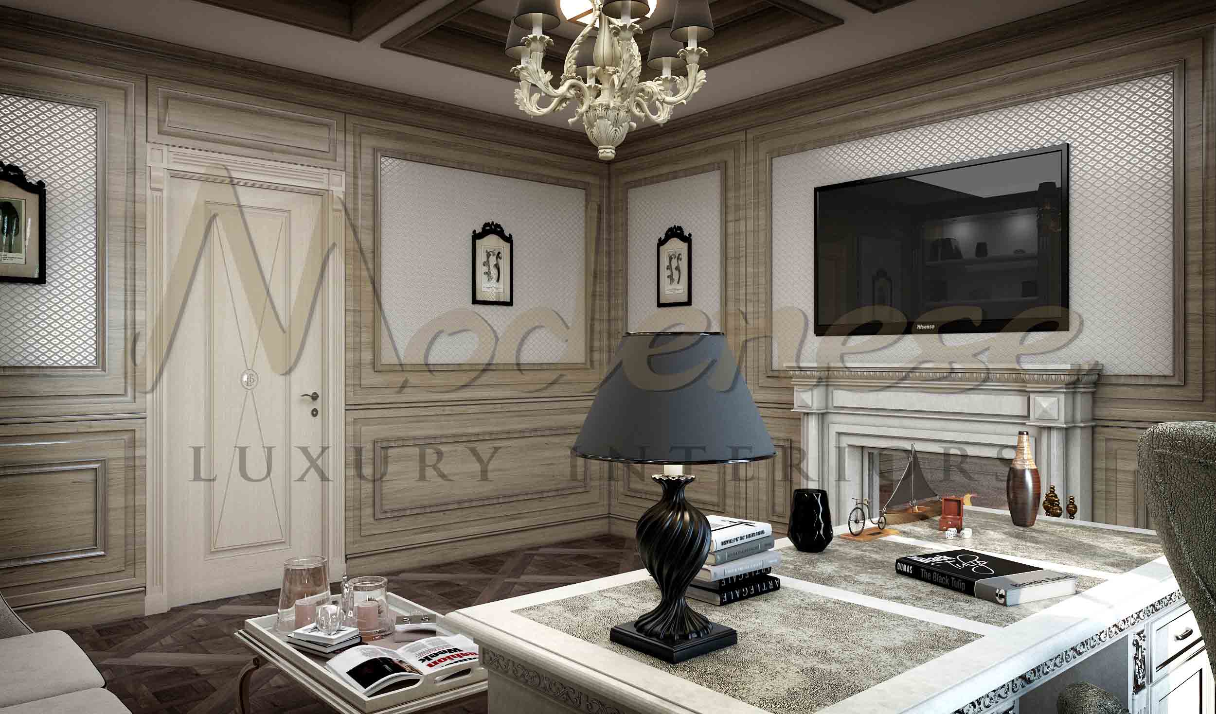 Office interior design by Modenese Luxury Interiors is the art of creating a relaxing and pleasant environment in which you can work efficiently. Each project satisfies all of the customer’s wishes, life perspectives and activities. The office design is a distinct and important aspect of our work. Our clients are, after all, people who have achieved great success and have a high social status. This implies that they devote a lot of time to their preferred occupation. We offer an exclusive design that follows the basic principles of building for a productive and comfortable workspace.