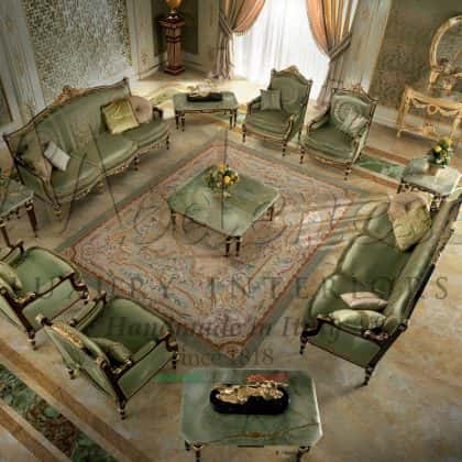 Modenese luxury furniture is here to offer you an exclusive design range to create your bespoke dewaniya furniture in a variety of sizes, finishes and combinations of materials. The original concept of this extraordinary area started in the 18th century, when each family (from here the expression Family Dewan), dedicated an additional space of the main residence to the guest room which was designated a formal sitting place for negotiations and remarkable discussions. And the tradition has been carried on until today: we create handcrafted made in Italy furniture to furnish this timeless guest room with a magnificent set of dewaniya composed by comfortable and sophisticated sofa sets, matched to refined coffee tables which will be optimally positioned all around this warm luxurious atmosphere.