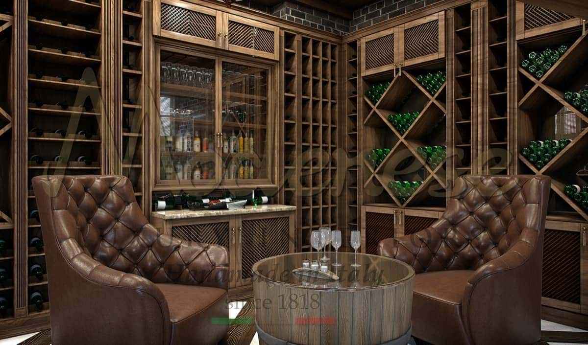 A traditional and timeless classy winery is always a good solution for gourmets and people who enjoy the most luxurious lifestyles. Tailor-made solutions, bespoke handmade interiors in solid wood, classic design, Italian high-end quality are the primary ingredients of your favorite classic style wine cellar interior design and furnishing project.