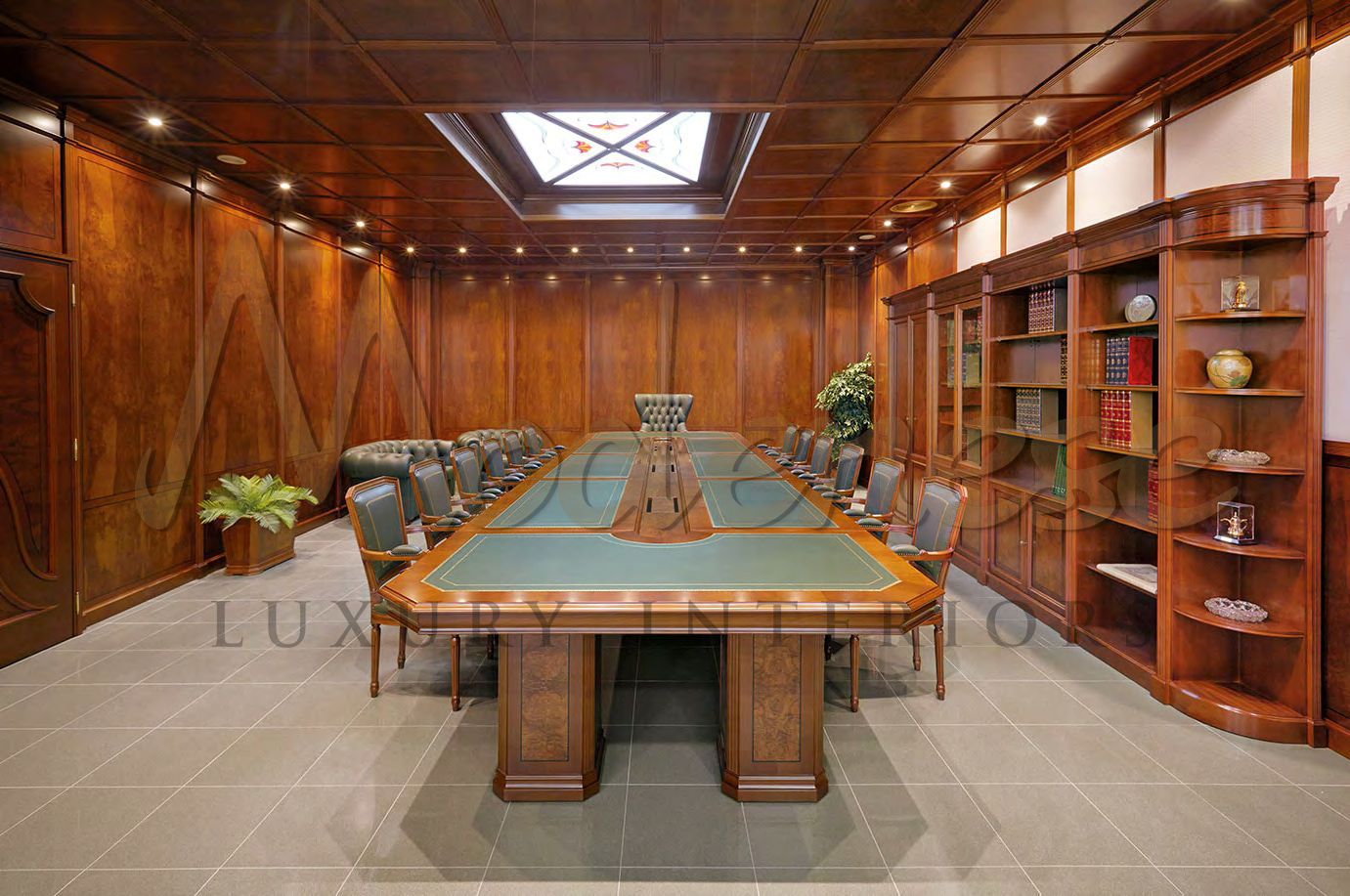 Elegant interior details compliment the luxury room interior design, creating the impression of personalized luxury. The table is extremely sumptuous, making it an excellent choice for your high-end luxury conference room design. The colors chosen are suitable for the luxury theme. Furniture is a must-have when it comes to getting luxurious. Its spectacular design is fully made of luxury to deliver a gorgeous appearance and feel to the atmosphere of the luxury conference room interior design. We assessed the subject and style that the customer really wants in this location. The luxury furniture, which is well-designed with utility and class, completes the luxury room interior design.