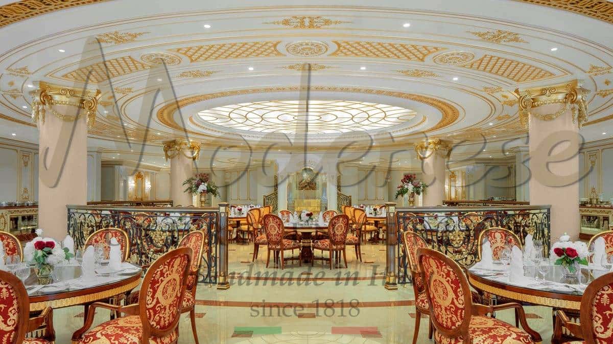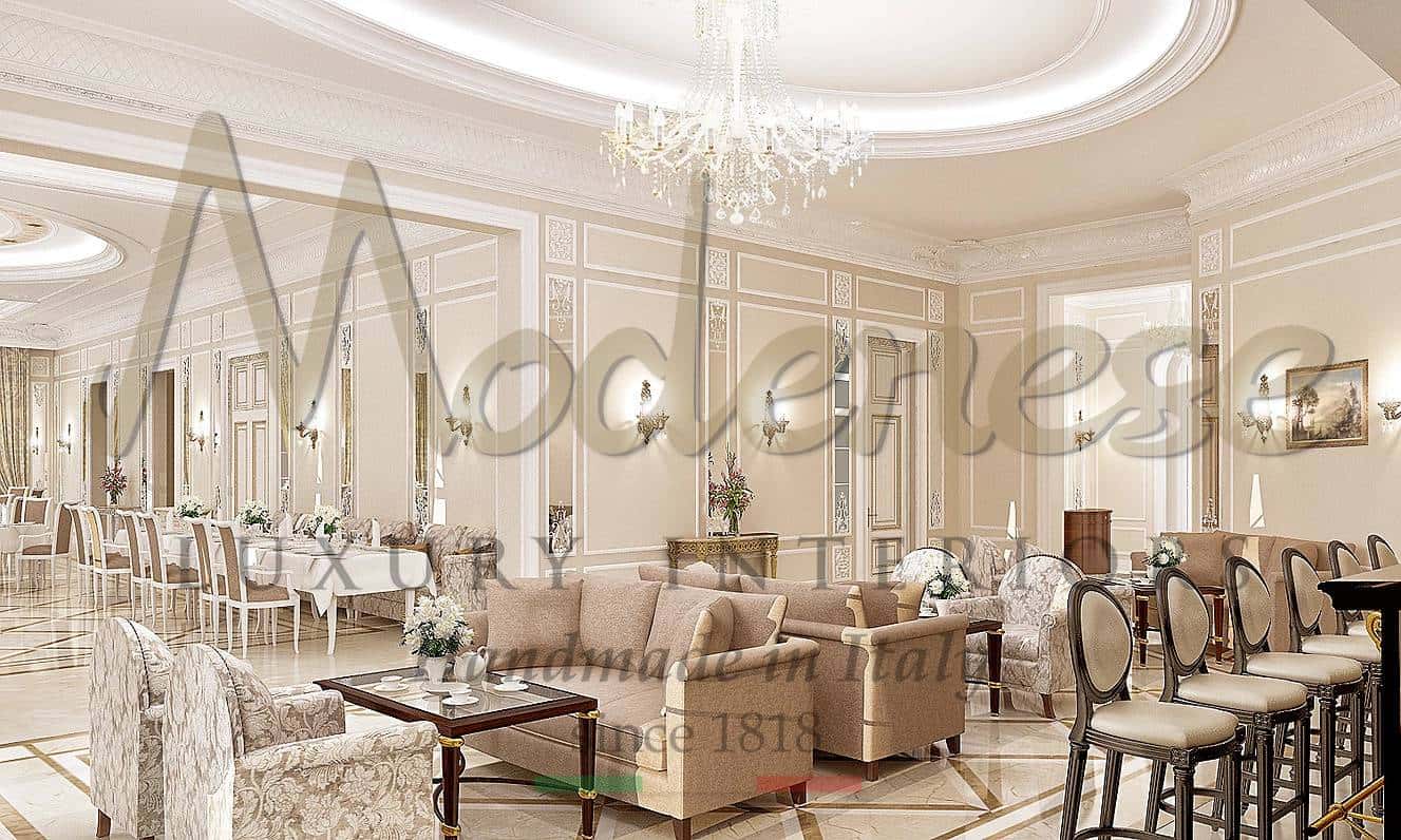 Modenese design for your classy and elegant commercial projects. The perfect fit out and furnishing project accurately selected for the most luxurious restaurants and bars spaces. Unique and custom-made projects completely designed and realized in Italy. Following our traditional handmade production and baroque timeless design. Our interior design team will support you step by step to create your premium commercial space design.