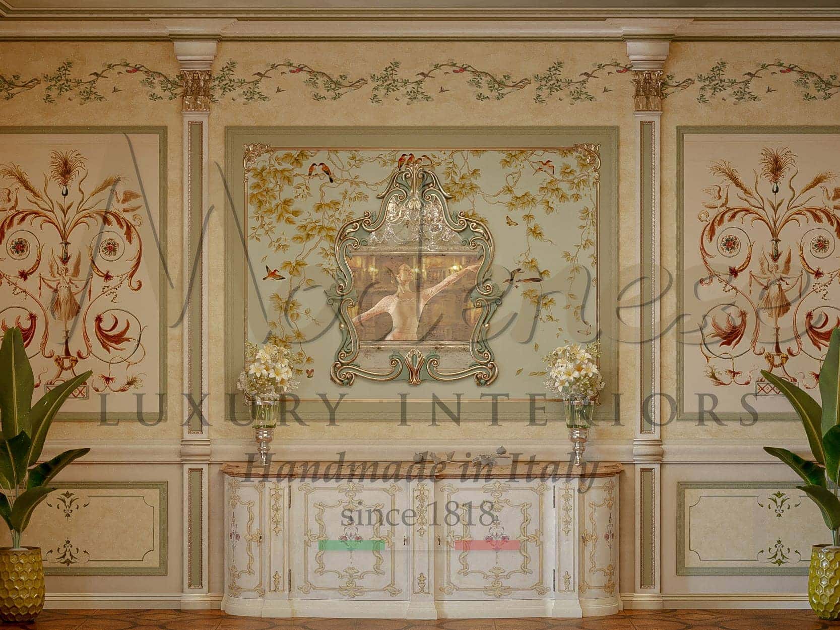 Handmade paintings and bespoke decorations express the exclusivity we may guarantee for your special projects. Take a look at the excellent décor work we create to embellish every single wall of your royal classic project.