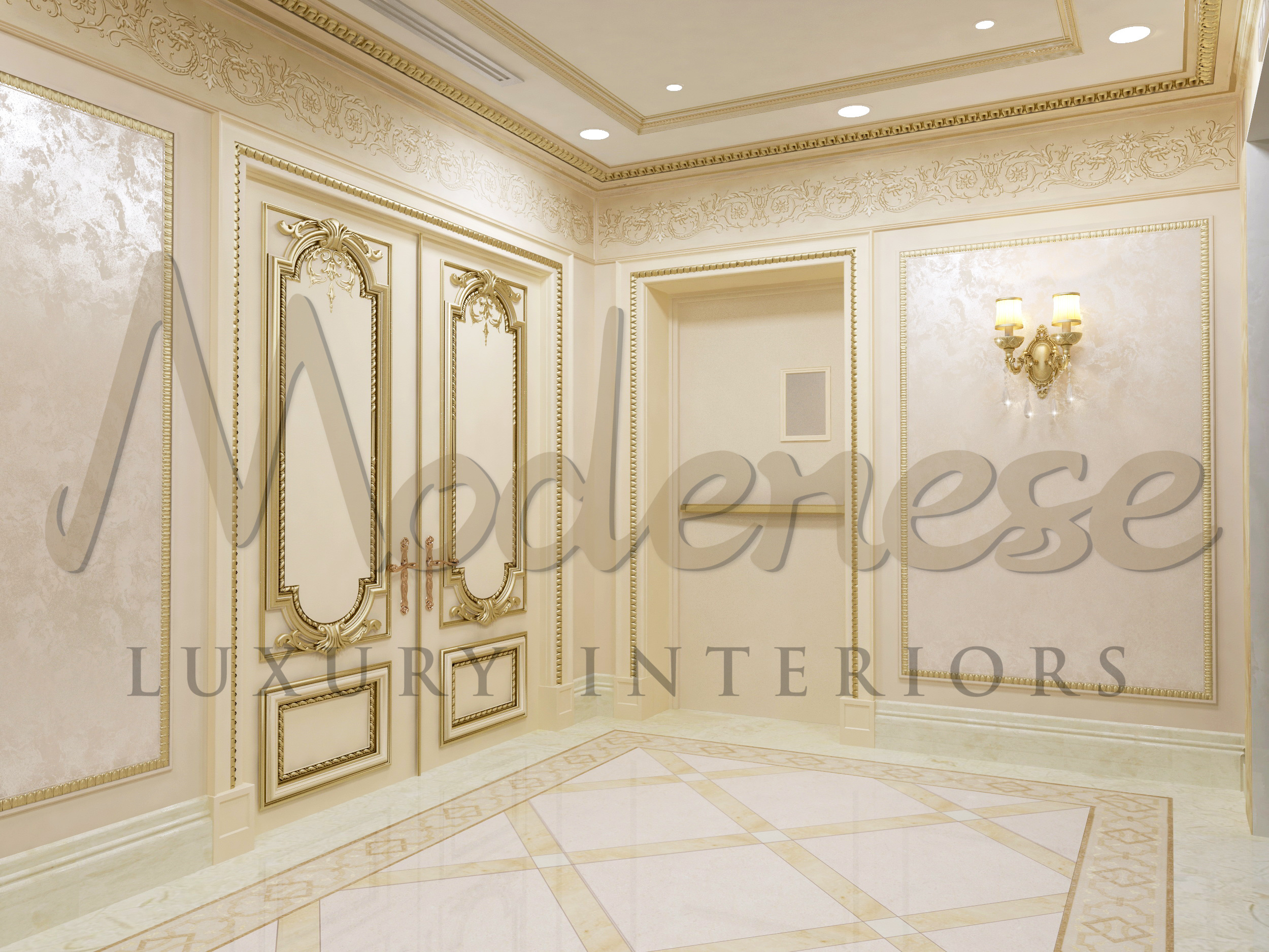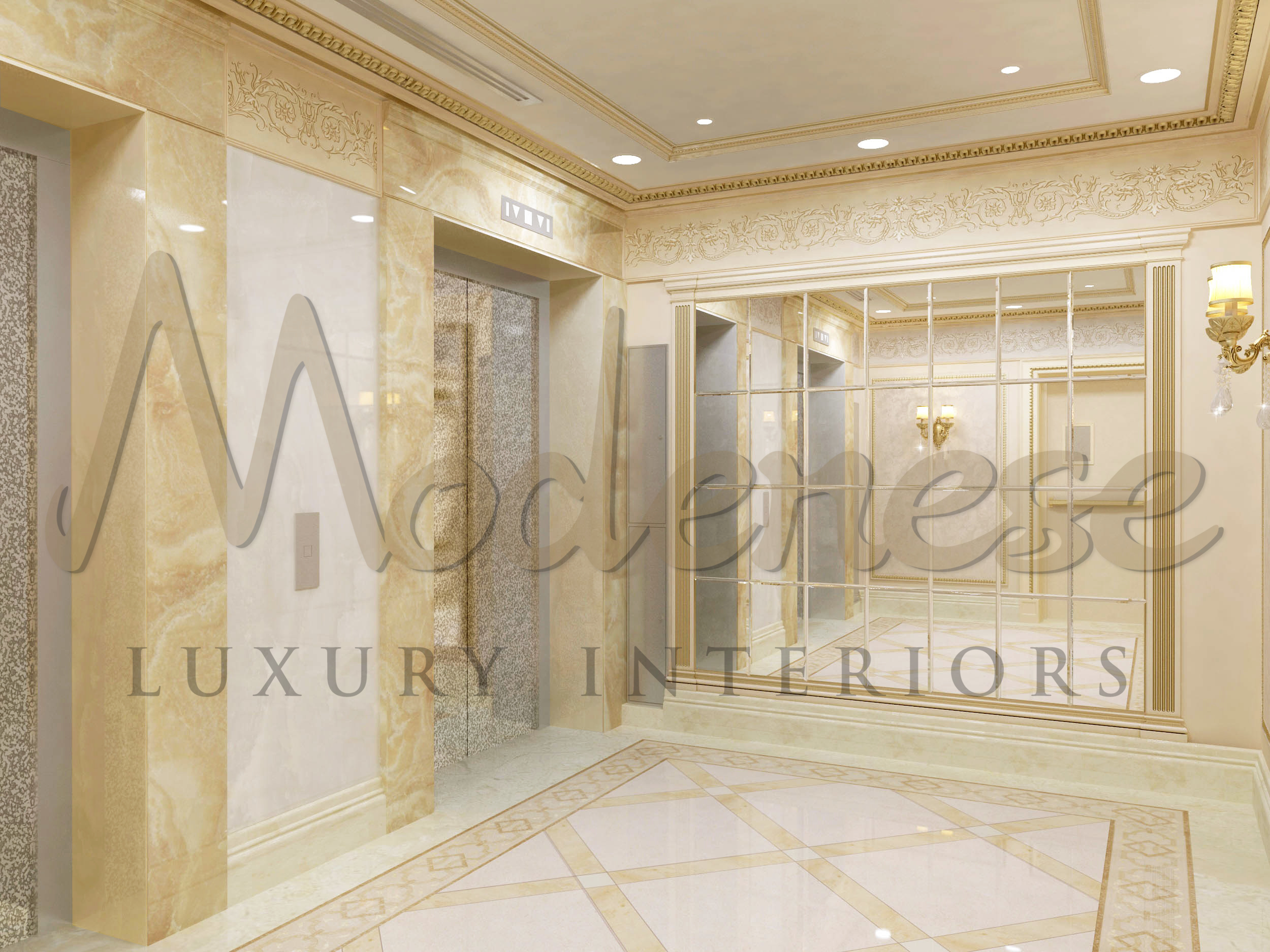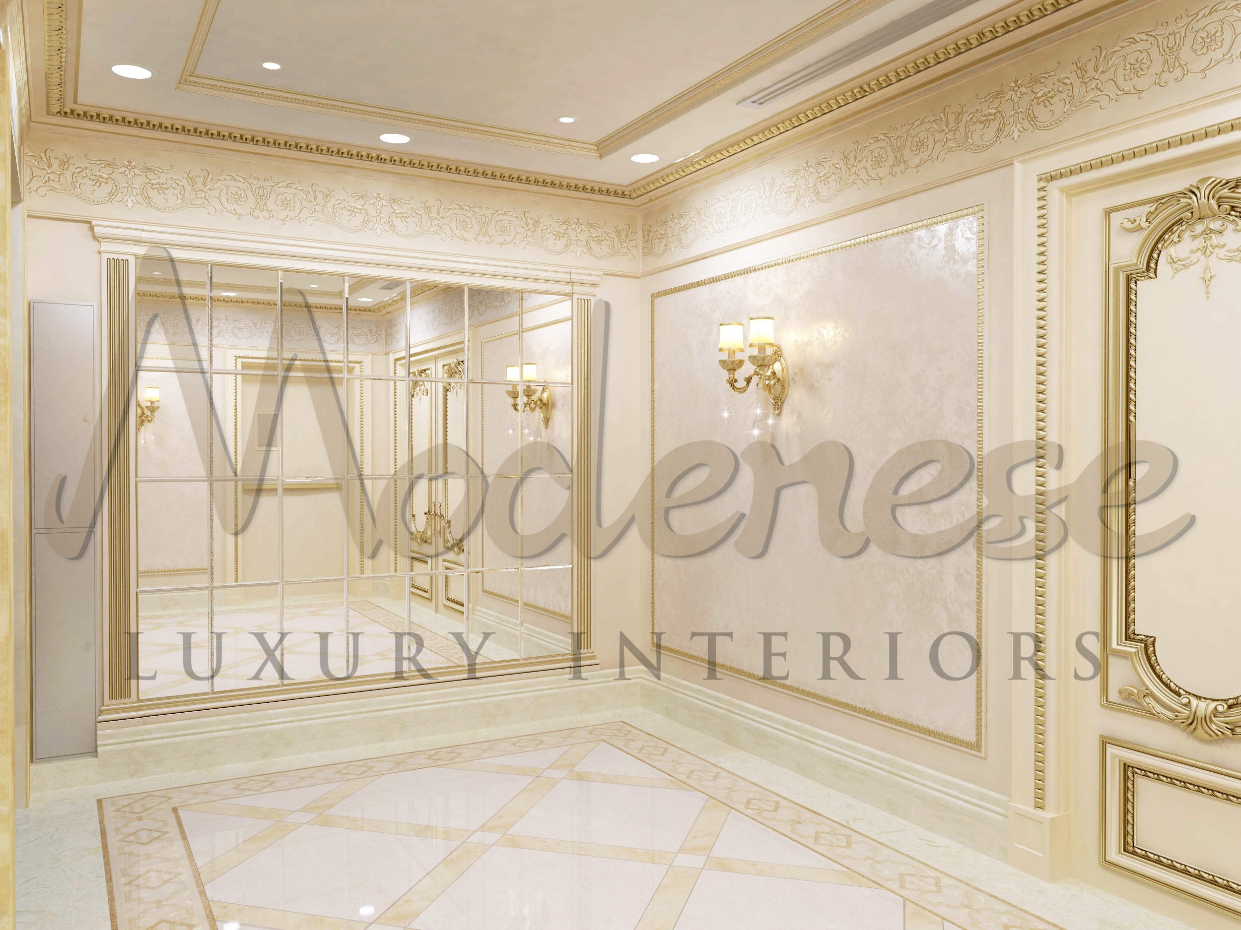 Everyone knows that designing a classically themed project is one of the Modenese Luxury Interiors’s talents. It has become one of the team’s most valuable assets, as this hall area need a fully classical feel. The Modenese Luxury Interiors team is dedicated to providing all of the necessary implementation and solutions for each project. Each activity is completed with zeal and inspiration in order to make it more distinctive and sumptuous.
