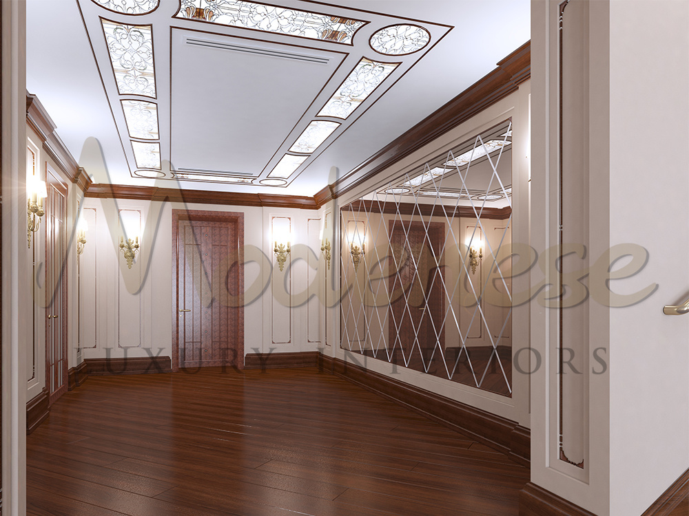 The most useful and used portions of the house are the hallways. Most of us think of a corridor as just a method to get from one room to another, yet hallways are quite important in any interior. A home project will never be finished without hallways since they affect the interior design and tie the whole house together. Although decorating hallways is not as difficult as decorating other key parts of the house, design consistency is still required to achieve the ideal mix of style and interior design arrangement. A highly obvious art will be executed over the gypsum and wall design in Classical halls, creating a dramatic beauty.