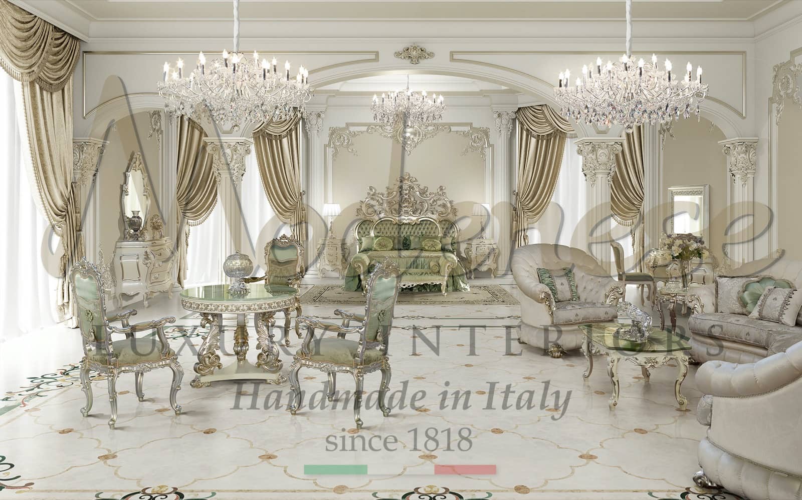 If you request it, we will also study for you the different options for coverings: from floors, through walls and finally to the ceiling. You can choose from wonderful and luxurious marble inlays, different tones and textures of the wood by customizing the floor design or maybe you can use a warm and soft carpet that is also customized on the basis of your tastes and style. The same goes for the walls: we can offer you different coatings such as boiserie, lambris, wallpaper or even simple wall paints with particular textures and nuances. Whatever your requests, the Modenese Luxury Interiors contract team will be by your side to make it happen!