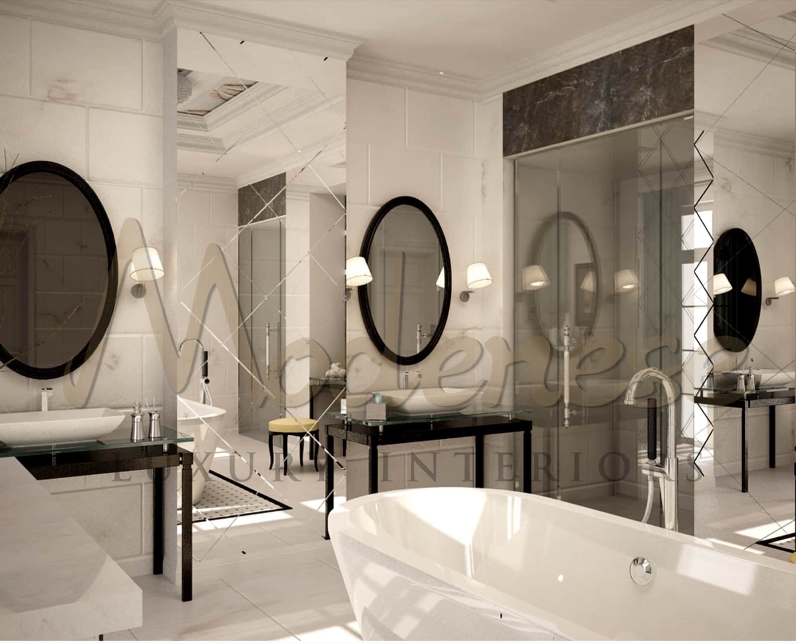 A well-designed bathroom may be the focal point of a luxury house while also providing a relaxing environment. Modenese Gastone Interiors is a well-known expert in developing modern masterpieces and is the best supplier of any bathroom interior design. As many bathrooms as wanted can be included in a luxury home, villa, or apartment. At a time when we’re focusing on self-care and keeping our homes healthier, a luxury and serene bathroom interior design may do wonders for our physical and mental well-being. On the other hand, elegance in your harmony interior design bathroom suite does not always indicate minimalist bathroom design or cutting-edge technology. These extravagant bathroom design ideas will make your space appear more expensive and exquisite, while also considering the room’s practicality.