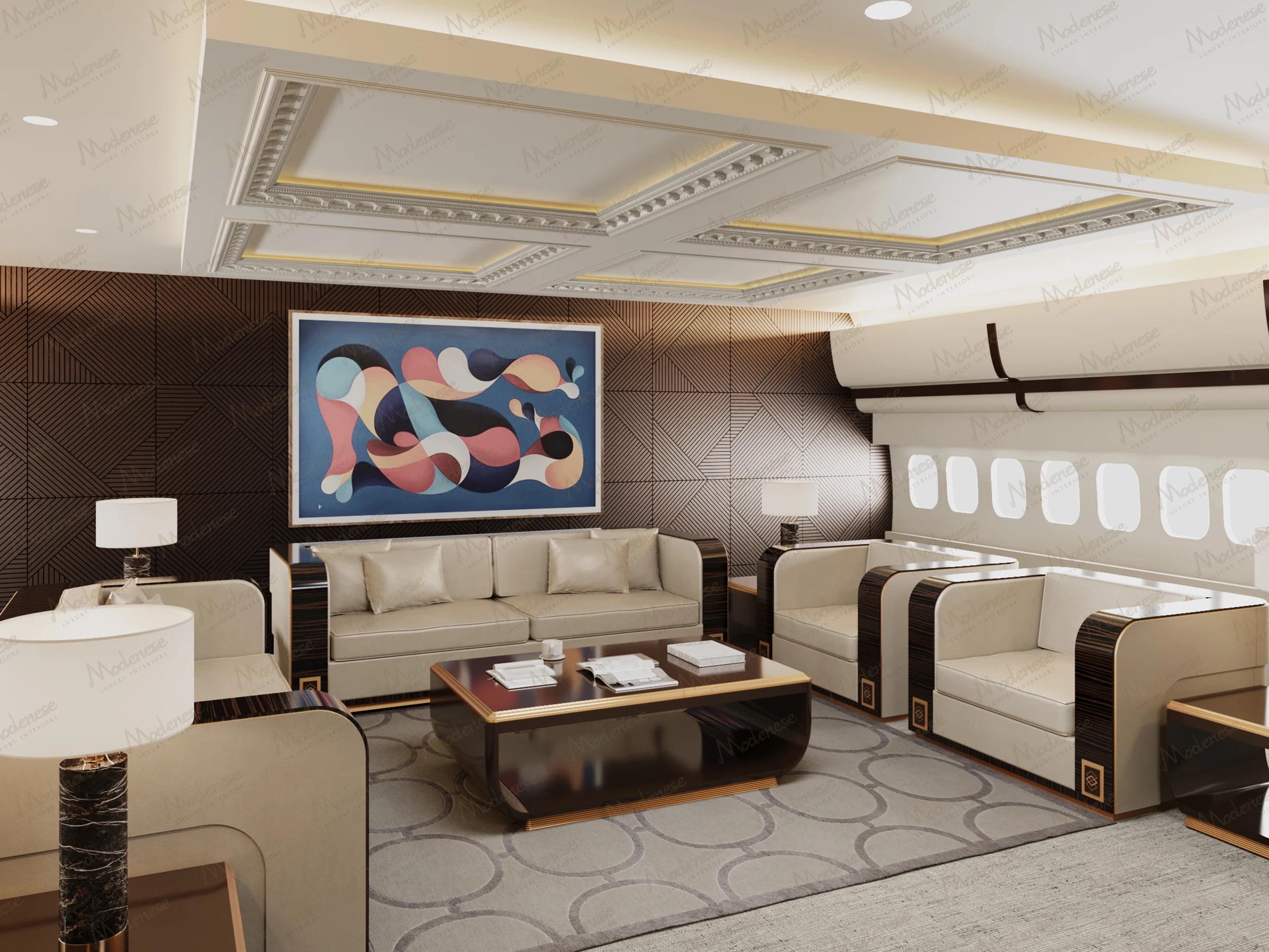 This is the time to embark on your design journey and enjoy your class, elegance and wealth. Contact Modenese Luxury Interiors today, let's create a private jet interior that soars above expectations.